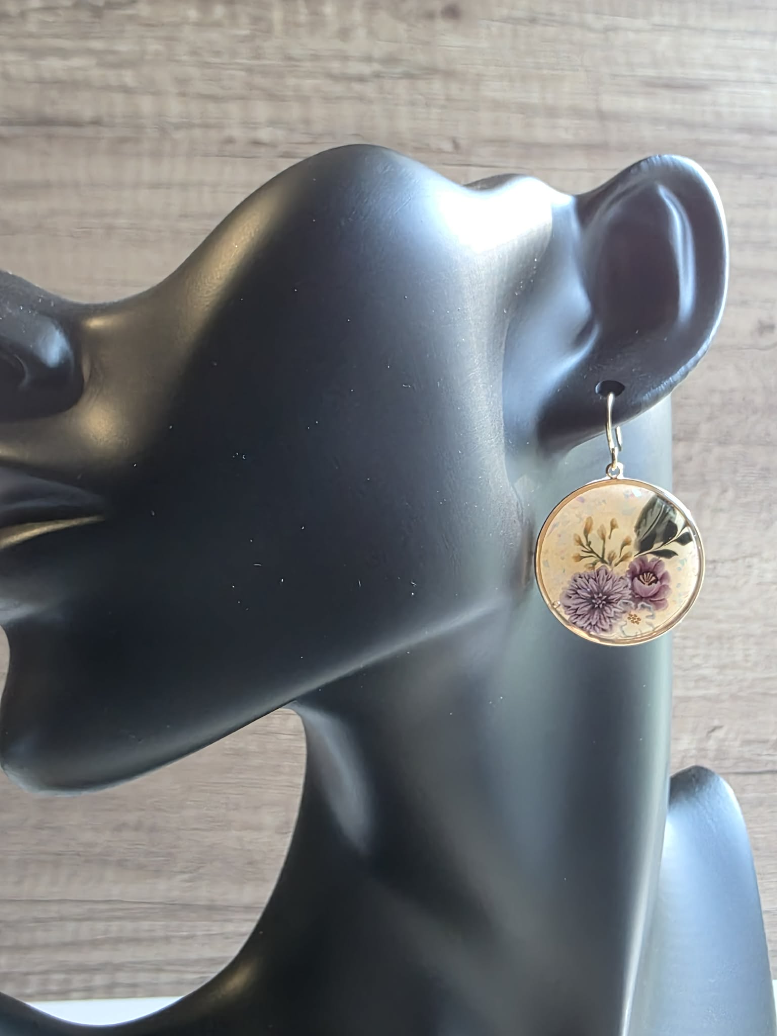 Softly romantic with a timeless feel, the Heirloom Meadow Medallion Earrings feature a delicate floral arrangement in muted lavender, blush, and ivory tones, accented with subtle greenery and tiny golden blossoms. Each scene is set against a luminous, softly speckled background and framed in a classic gold-tone round bezel, evoking the look of a preserved botanical keepsake.