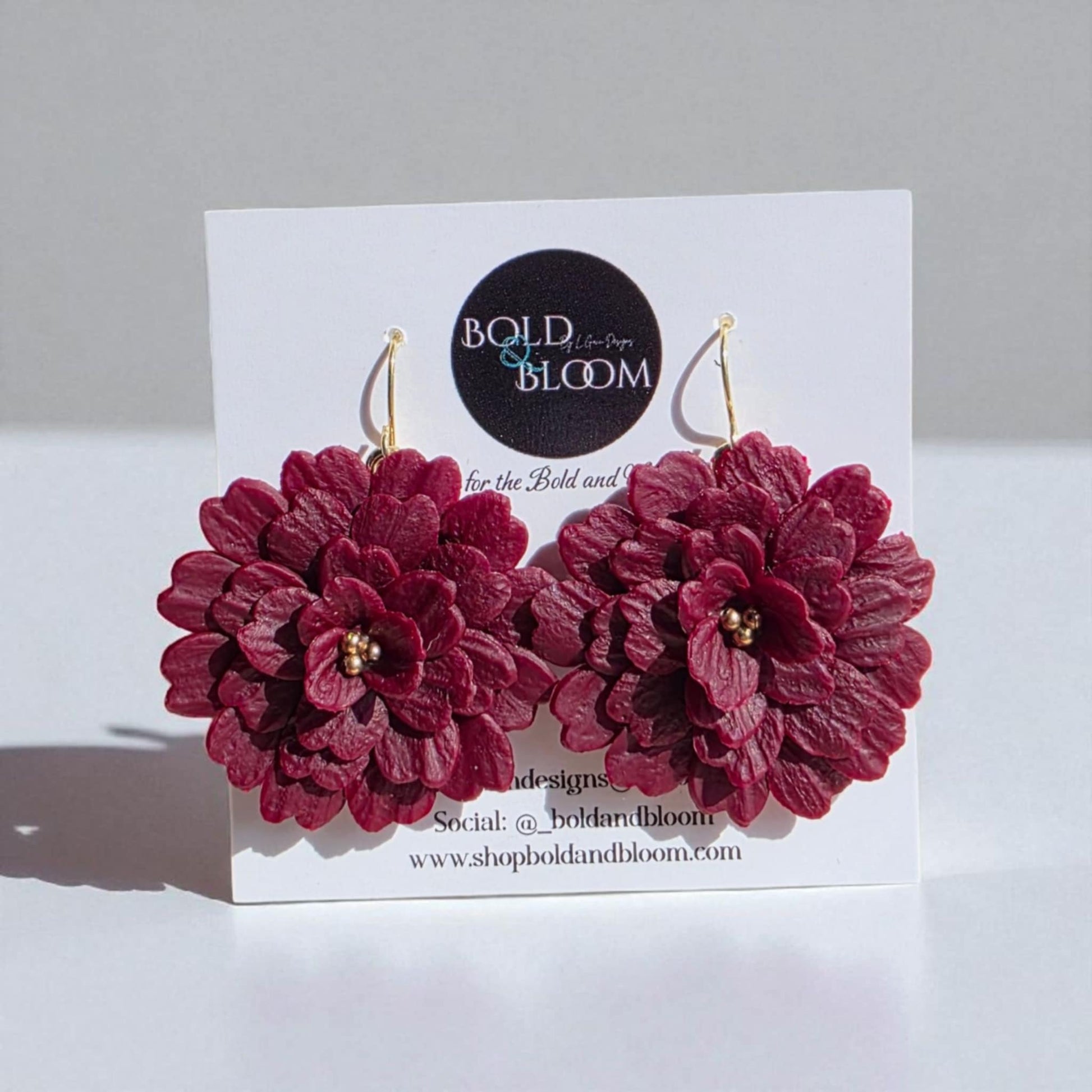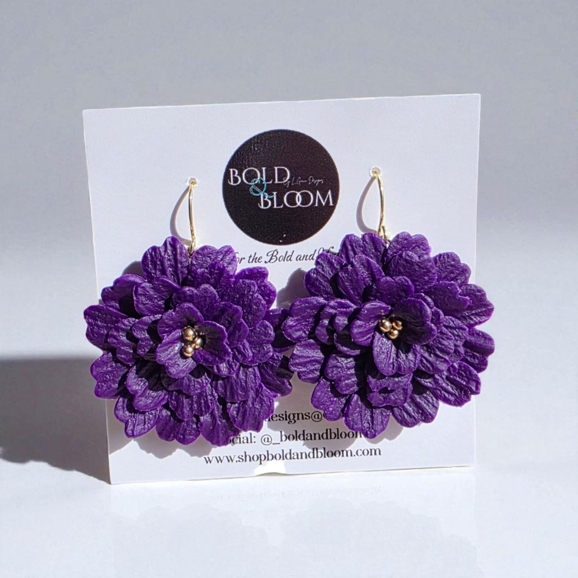 Step into your power with the Midnight Bloom Collection, where boldness meets beauty in every petal. Each earring is carefully hand-sculpted from lightweight polymer clay, creating a lifelike floral design that feels as effortless as it is striking. Finished with gold-tone accents and hypoallergenic hooks, these blooms are designed for comfort, confidence, and unforgettable style.