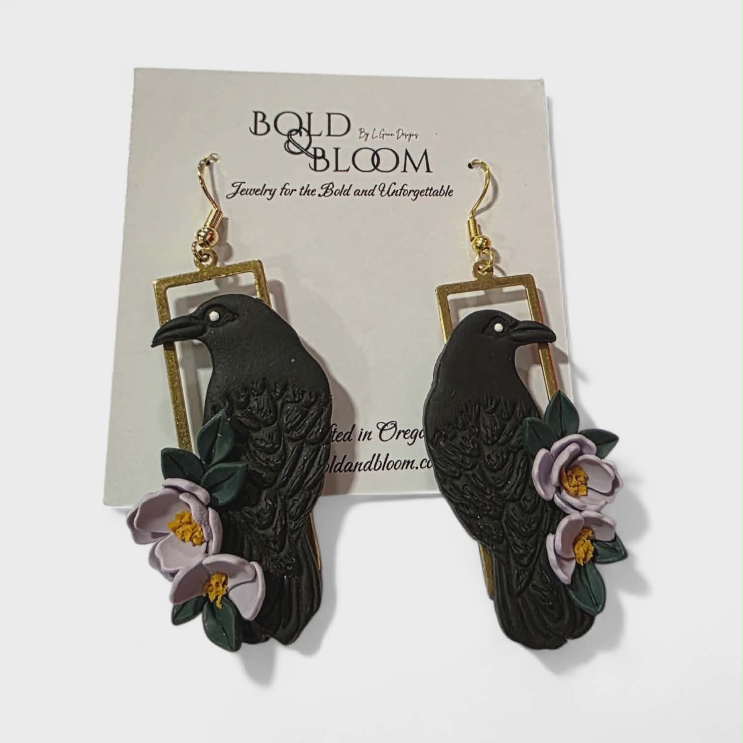 Ravenveil Bloom captures the quieter side of Shadowbloom. A sculpted raven rests within a softly gilded frame, adorned with pale florals that suggest growth emerging from stillness. Ravens symbolize intuition, protection, and transformation, making this piece feel watchful rather than ominous. Romantic without sweetness. Dark without heaviness. Designed for women who carry strength quietly and wear it well.