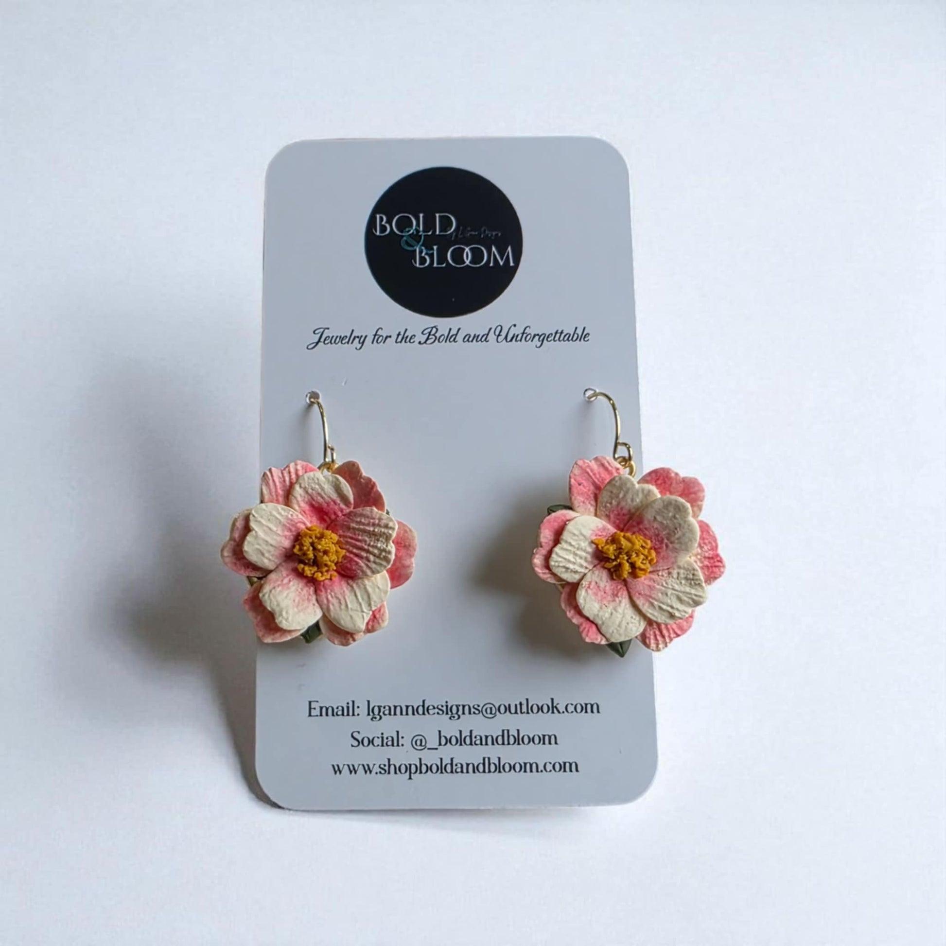 Handcrafted with lifelike petals and a golden floral center, each pair of our Bloom Earrings is a wearable work of art. Lightweight, hypoallergenic, and bold without being heavy, these earrings are designed to let your confidence bloom—whether styled casually or dressed up.