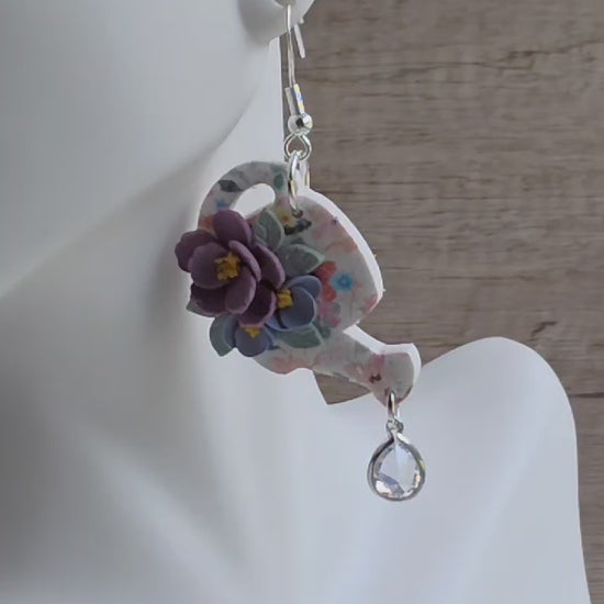 The Wild Violet Watering Can Earrings are where garden whimsy meets bold femininity. These handcrafted polymer clay earrings feature a soft floral print base in the shape of vintage watering cans, adorned with sculpted violet and periwinkle blooms and delicate green leaves. A faceted teardrop crystal dangles from each spout, echoing the sparkle of morning dew.
